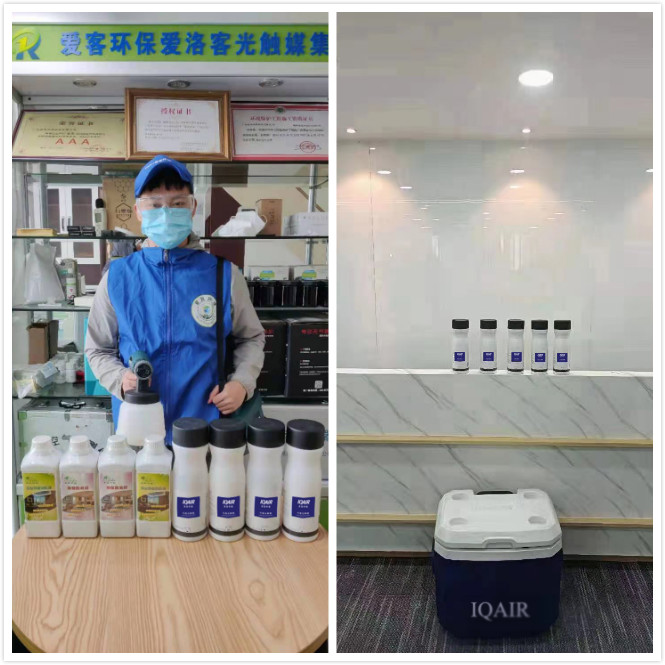 ⊙所用技術(shù):愛(ài)客環(huán)保(食品級(jí))復(fù)合光觸媒、高分子生物酶、石墨烯吸附炭包
