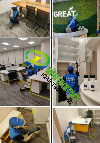 愛(ài)客工程師們針對(duì)辦公區(qū)地毯、柜體、家具物表逐一噴灑愛(ài)客濃縮型異味分解酶(食品級(jí))與強(qiáng)力TVOC清除劑(食品級(jí)),以消除化學(xué)異味分子,降解甲醛及TVOC。并結(jié)合紫外線燈進(jìn)行殺菌消毒治理。