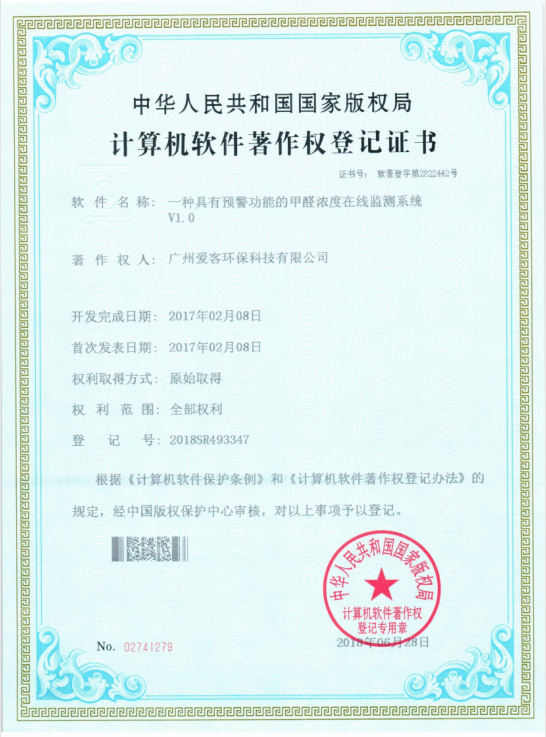 愛(ài)客環(huán)保軟著證書(shū)